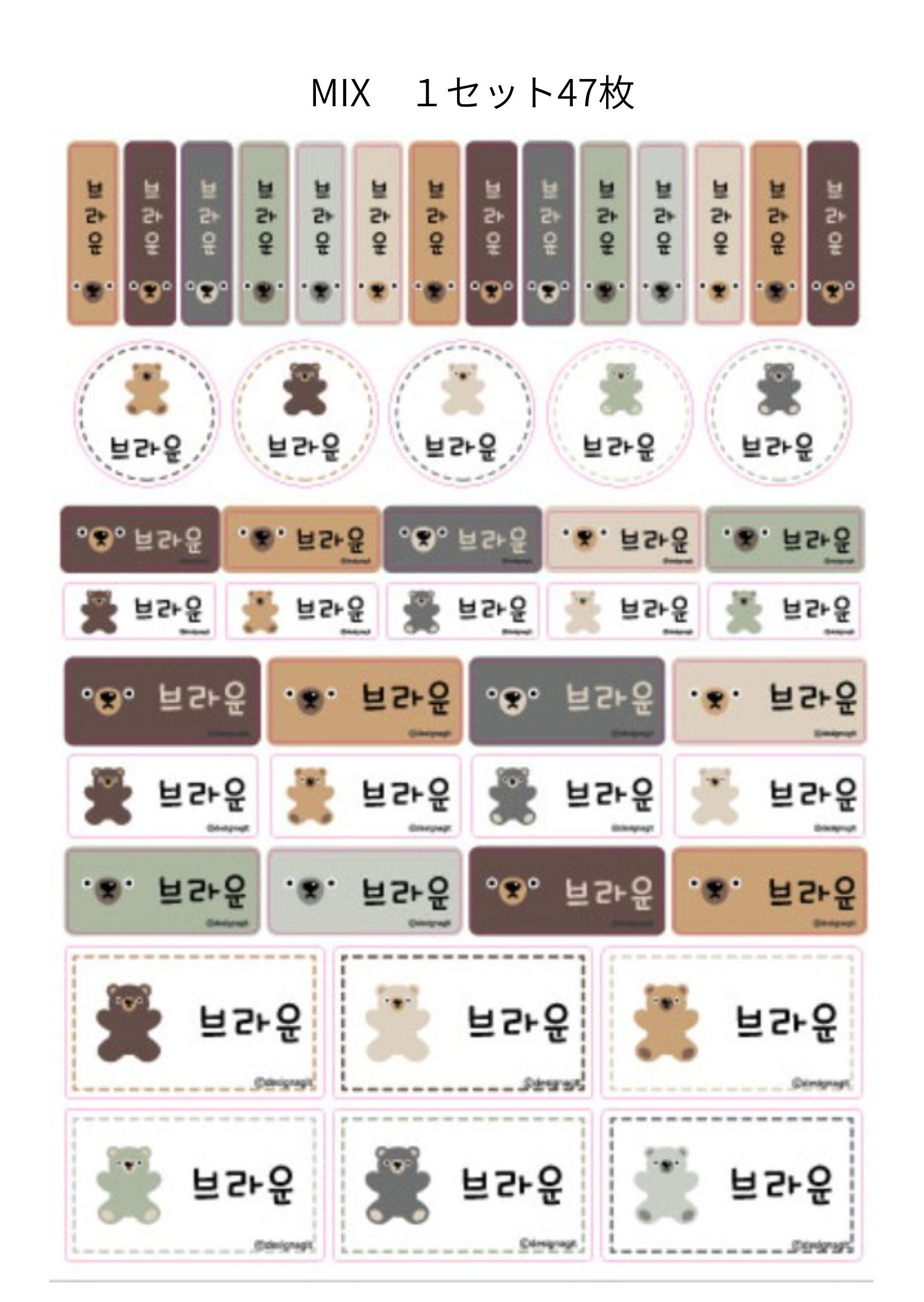 キャラクター名前シール(ブラウンベアー)