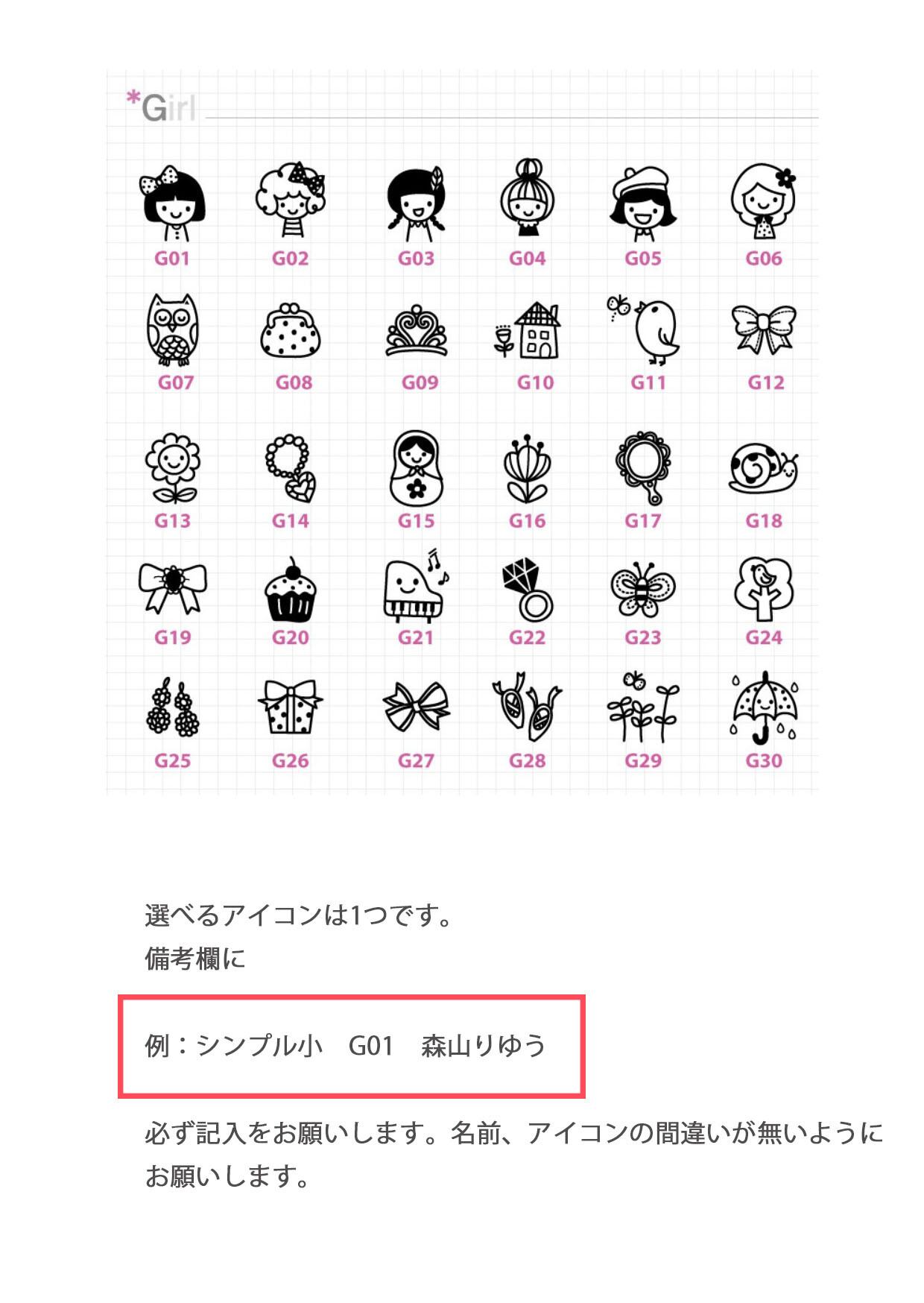 好きなイラストを一つ選べます